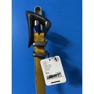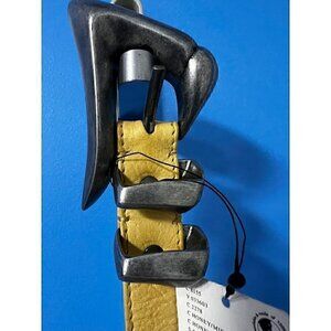 FREE PEOPLE Billie Leather Belt With Silver Buckle, Yellow, WESTERN, COUNTRY M/L