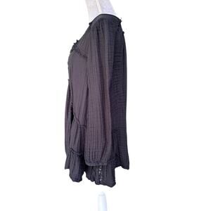 FREE PEOPLE Black 100% Cotton Button Front Boho Peasant Blouse Top Size L