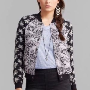 FREE PEOPLE Black Floral Snap Bomber Jacket S