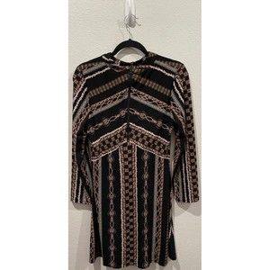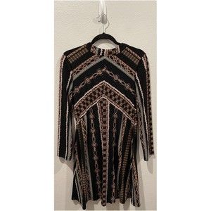 FREE PEOPLE Black Geometric Mock Neck A-Line Mini Dress. Size M