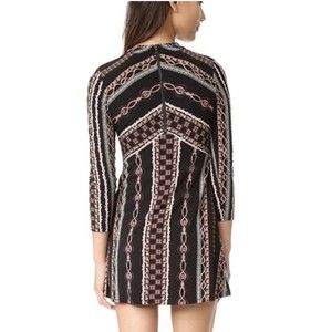 FREE PEOPLE Black Geometric Mock Neck A-Line Mini Dress