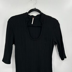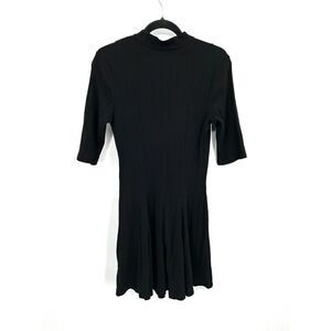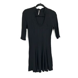 FREE PEOPLE Black Jolene Ribbed Knit Fit & Flare Half Sleeve Mini Dress Large
