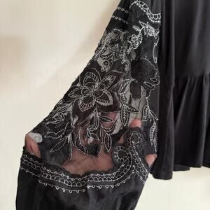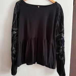 FREE PEOPLE | Black Penny Embroidered Sleeve Boxy Peplum Top | Small