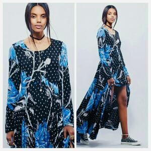 FREE PEOPLE Black Purple & Blue Floral Print Dress – Medium