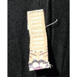 This stunning Free People slip dress in size M features a beautiful Aztec tribal pattern with accents of ruffle and delicate embroidery. The dress is made from a soft, stretchy fabric that drapes beautifully and has a pullover closure for easy wear. The sleeveless design and knee-length hem make it perfect for any summer occasion. The black, purple, and blue color scheme is sure to turn heads and the embroidered trim and bottom soft pleated ruffle add the perfect finishing touch. This dress is a must-have for any fashion-forward woman looking for a stylish and comfortable addition to her wardrobe.