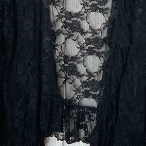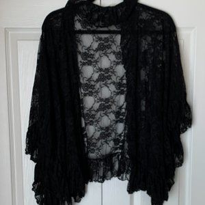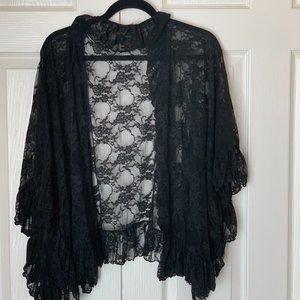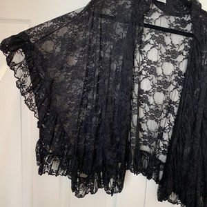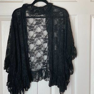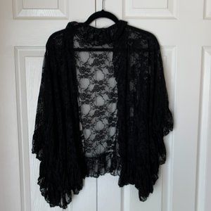 FREE PEOPLE Black Ruffled Lace Jacket Shrug Top Kimono