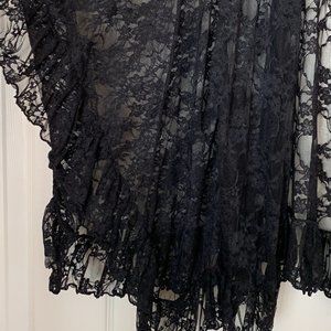 INTIMATELY FREE PEOPLE Black lace and fringed in ruffles; it doesn’t get any more feminine or sexy than this jacket, shrug, top by Intimately Free People. Pictures do not do justice. Image how to style this over: dresses, jeans, leggings, trousers: stunning.