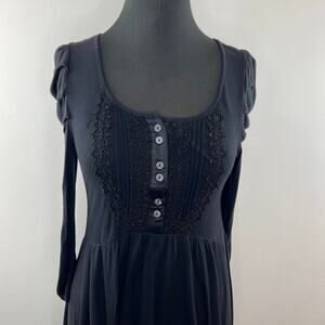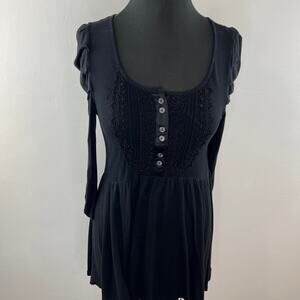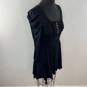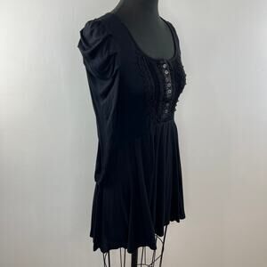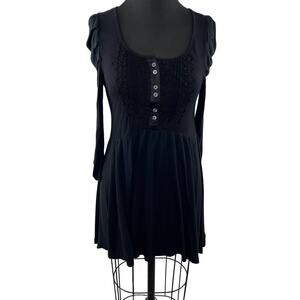 FREE PEOPLE Black Scoop Neck Long Puff Sleeve Boho Fit Flare Mini Tunic Dress S