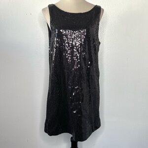 FREE PEOPLE Black Sequin Shift Dress Mini Pullover Scoop Back Size 10
