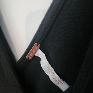 Chic black sleeveless dress with a V-neckline. It has zippers details on the side and in front