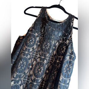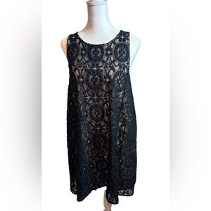 FREE PEOPLE Black Sleeveless Lace Overlay Dress with Back Cutouts S/P