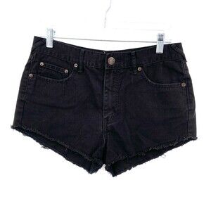 FREE PEOPLE Black Wash High Rise Cutoff Raw Hem Denim Jean Shorts Size 28