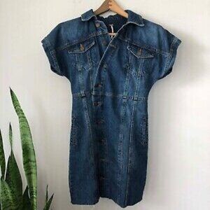 FREE PEOPLE Blue Denim Short Sleeve Button Down Mini Dress Size XS