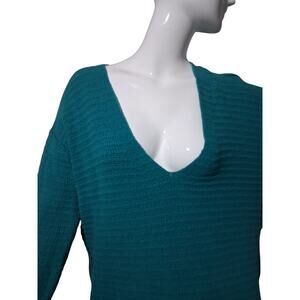 FREE PEOPLE Blue Heart It Laces Oversized Women's Small Grungecore Prep Sweater V-Neck Casual Career Wear Feminine Cozycore Chunky Top Stitch Textured