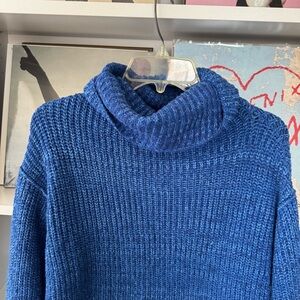 FREE PEOPLE Blue Knit Eleven Oversized Sweater