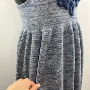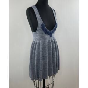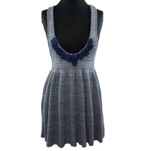 FREE PEOPLE Blue Knit Embroidered Scoop Sleeveless Pleated Fit & Flare Dress L