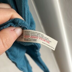 intimately Free People blue body suit with pleated sleeves. Size small. Rayon/elastane blend.