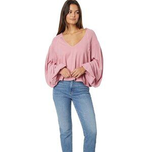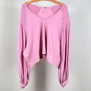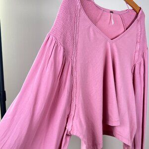 FREE PEOPLE Blush Pink Kathy Boho Long Sleeve Blouse. Size L