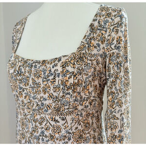 FREE PEOPLE Boheme Mini Dress Sz 6 | Floral Square Neck Romantic Cottagecore