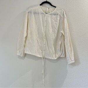 FREE PEOPLE Bohemian Eyelet Crew Neck Button Down Top Drawstring at Hip STAIN