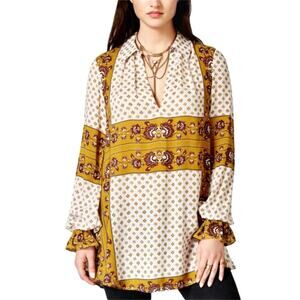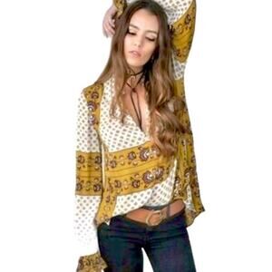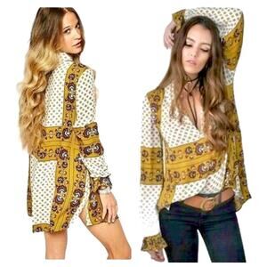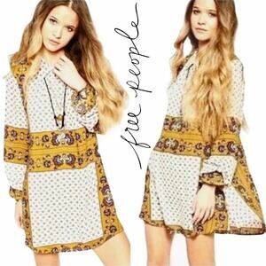 FREE PEOPLE Boho Mustard Yellow Floral Tunic Top / Dress