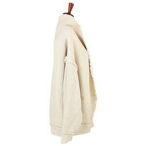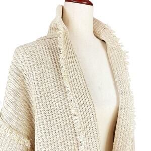 FREE PEOPLE Boho Oversized Fringed Heavy Ribbed Open Shawl Cardigan Size M Cream