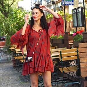 Tags: FREE PEOPLE, Floral, Ruffle, Mini Dress, Blouse, Short Tunic Top, Floral Print, Spring Summer, Red Dress, Flower, Floral Dress, Boho, Ruffle Dress, Bohemian