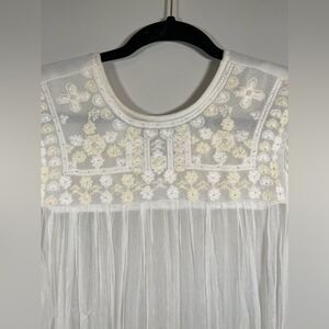 FREE PEOPLE Boho sheer embroidered ivory Blouse Size S