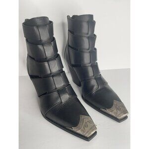 FREE PEOPLE Boots Brayden Washed Black Leather Fisherman Booties EU 38.5 US 8