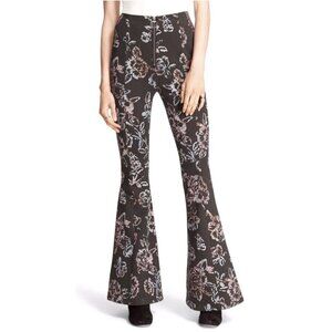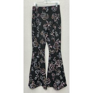 FREE PEOPLE Born to Be Wild Pants Size 4 Bell Bottom Flare Floral Ponte Knit