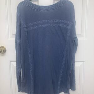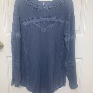 FREE PEOPLE Boy Meets Girl Long Sleeve Top. Pacific Coast Blue. Large.