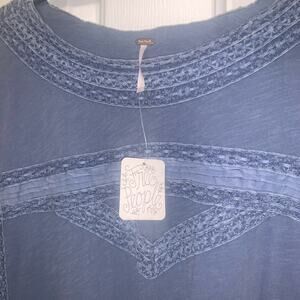 Elegant blue top with intricate lace detailing. Stylish, casual Boho feel. GORGEOUS COLOR