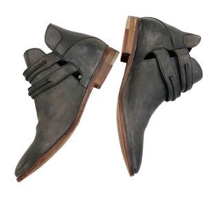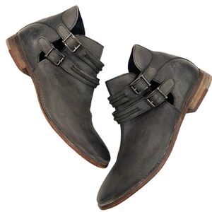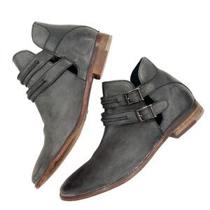 FREE PEOPLE Braeburn Distressed Gray Leather Double Strap Ankle Boots (Sz 40)