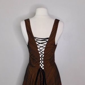 FREE PEOPLE Brown Lace Up Back Chevron Stripes Skater Dress Knit Boho ~ Small