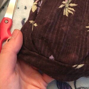 - dark brown / periwinkle ish - pastel blue baby blue ish purple ish / pink / green / multi multicolor floral print