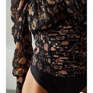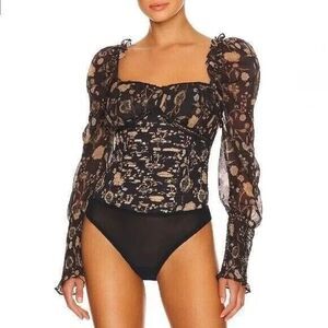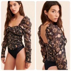 FREE PEOPLE Brunch Date Floral Bodysuit Pleated Sheer Femme Size Small