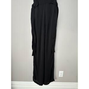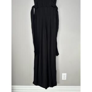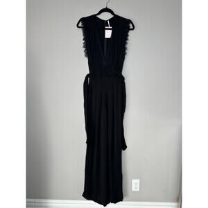 FREE PEOPLE CEM Black Sleeveless Lace Trim Deep V Cinch Waist Wide Leg Jumpsuit