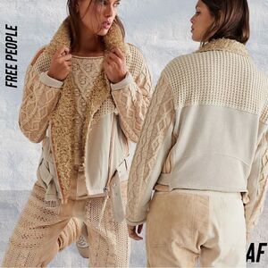 FREE PEOPLE COZY KNIT MIX MOTO JACKET NWT SIZE LARGE CREAM TAN