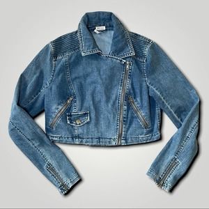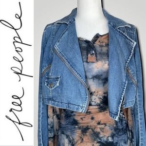 FREE PEOPLE CROPPED MOTO MOD ZIPPER DENIM JACKET - SP