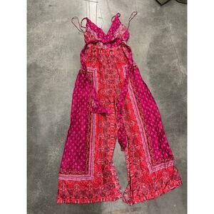 FREE PEOPLE Cabbage Rose Red/PinkFestival Boho Jumpsuit Sz 4