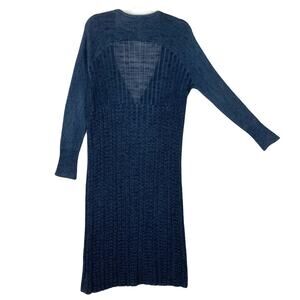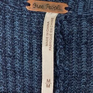 FREE PEOPLE Cardigan M Navy Stripe Rib Loose-Knit Cotton Snaps Pocket Long-Sleev