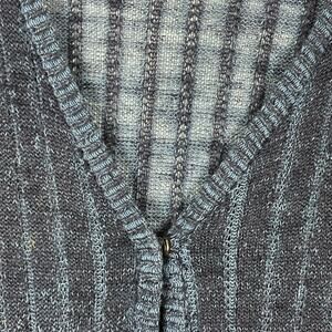 Cardigan.Navy.Loose Knit Cotton blend..Ribbed Stripe.V-Neck.Snaps Closer.Pockets.Long Sleeve.