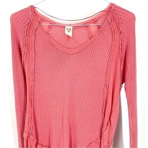 FREE PEOPLE Catalina Pink Waffle Knit Raw Hem Boho Beach Long Sleeve Thermal Top