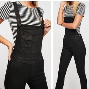 FREE PEOPLE | Century Denim Black Wash Skinny Jean Overalls Women’s Size 26