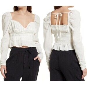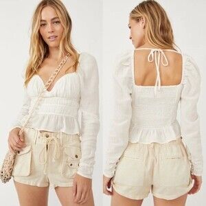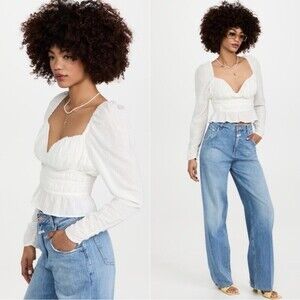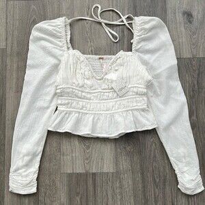 FREE PEOPLE Chloe Top XS White Puff Sleeves Smocked Cottagecore Boho Coquette