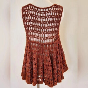 || FREE PEOPLE || Circles Within crocheted tank top, sweater, boho, orange