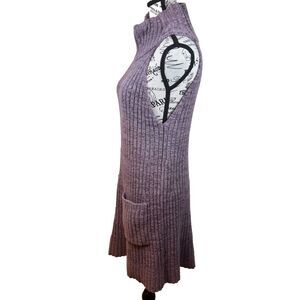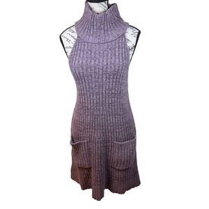 FREE PEOPLE Claude Turtleneck Mini Knit Dress Sleeveless Purple Ribbed Size M