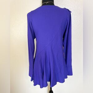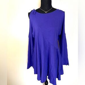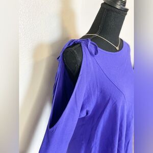 · Color/pattern: violet ·A-line design, cold-shoulder cut-out with right side bowtie detail, full length sleeve with wide vented cuff, asymmetric bodice seam detail · Slip-on styling · 99% rayon, 1% spandex · Machine wash