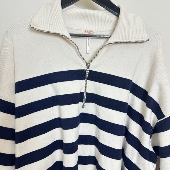 FREE PEOPLE Coastal Stripe Pullover in Champagne Navy Combo Size Medium