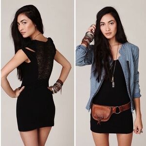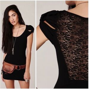 FREE PEOPLE “Coraline” Black Lace Back Mini Dress